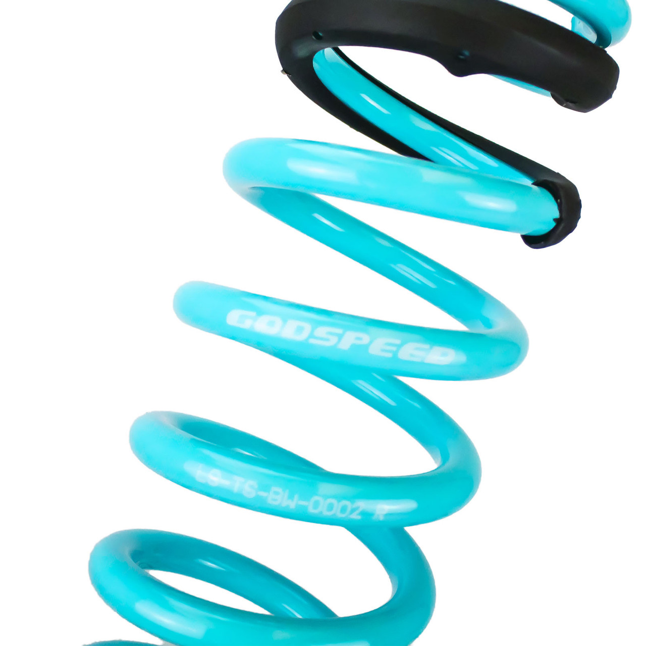 Godspeed Project's performance lowering springs are cold wound on coil winding machine with SAE 9254 spring wire material, one of the ideal materials available. Manufacturing Process involves steel material going through heat treatments before winding into coils, these are necessary steps in order to deliver an outstanding ultra high tensile strength and provide equal spring rates that are extremely durable in order to resist premature “sagging”. The end result of this process generates a spring that specifically offers improved vehicle handling and response capabilities while maintaining a very smooth yet comfortable ride experience. Each spring has been carefully precision tested and inspected in order to provide outstanding handling, response, control and balance throughout the suspension of your vehicle. These quality made performance lowering springs designed to work with OEM shocks and offer a generous drop to your vehicle while remaining at a comfortable daily ride height in order to avoid bottoming-out and clearance issues. Not only lowering your vehicle will improve vehicle handling, will also enhance overall appearance.