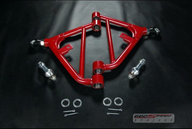 Those who seek the most from their car know that in the rigors of competition you need to extract every ounce of performance from your machine. Every degree of adjustment makes a big difference on your performance vehicle. Godspeed has the solution for all your track / road race needs. The GODSPEED front / rear lower control arm give you the strength to withstands the stresses and strains of hard cornering on a rough course. It also reduces brutal weight transfer and chassis flex.
