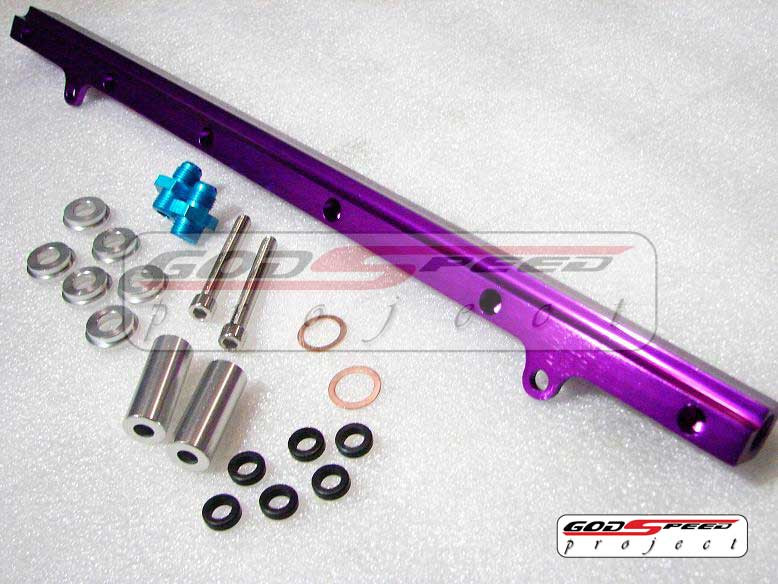 Fuel rail upgrade kit for NISSAN SKYLINE RB25 Motor -Direct bolt on -Allow tuner to use larger top feed injectors -Best for high boost and tuned vehicle -Fits 10.5 to 11 mm top feed injectors This fuel rail upgrade kits are high-performance fuel delievery unit that are designed to properly supply the additional fuel needed for high performance / boost applications. this fuel kit is direct bolt-on replacements of factory fuel rails, this allows tuner to use larger top-feed injectors. This fuel rail are machined out of aluminum and anodized.