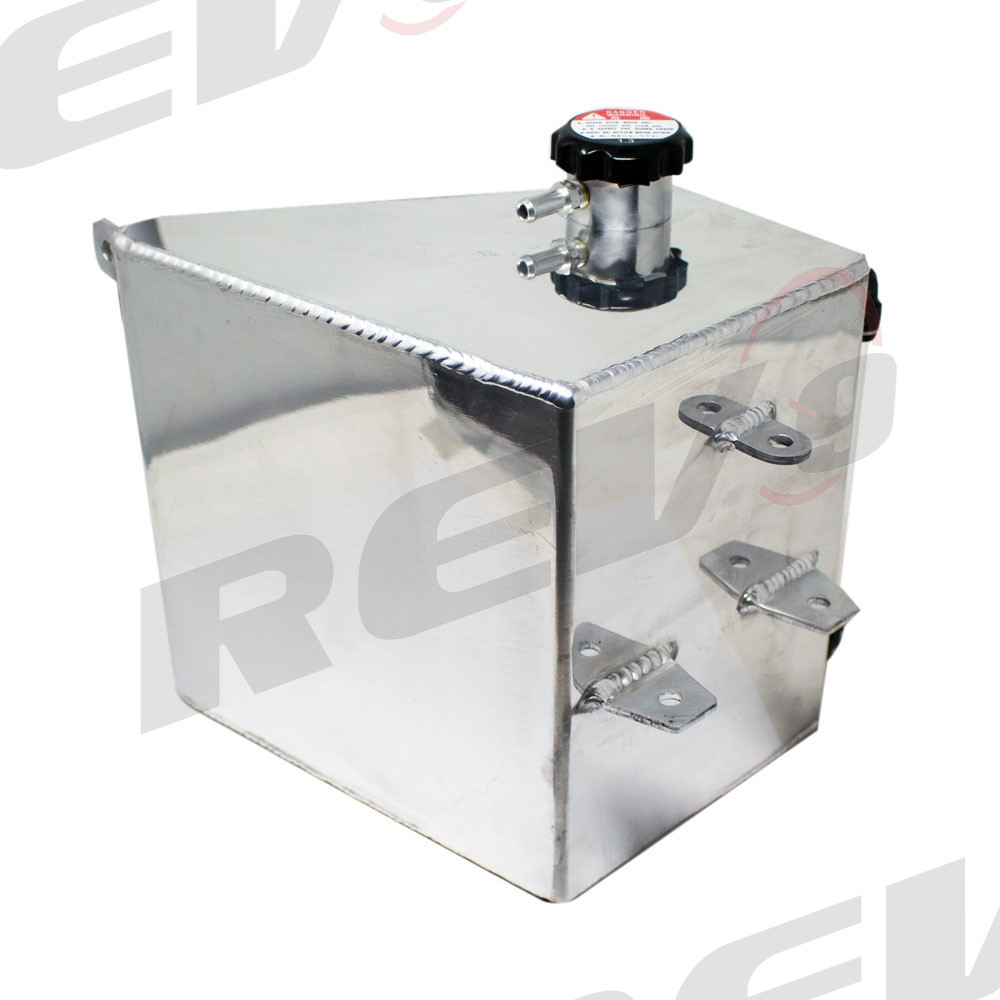 s your OE coolant tank leaking or just plain ugly? Replace it with Rev9's aluminum tank today! Constructed of corrosion resistant aluminum alloy sheet with TIG welding craftsmanship makes it outlast the lifetime of your car. Lightweight and made to refresh the overall look of your engine more at affordable pricing.