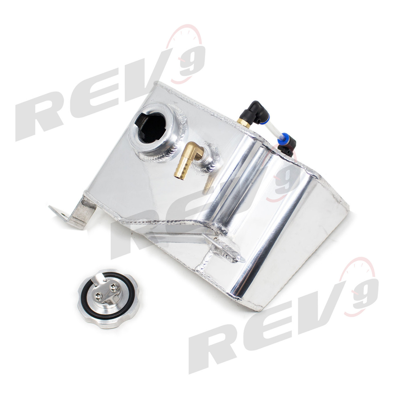 Is your OE coolant tank leaking or just plain ugly? Replace it with Rev9's aluminum tank today! Constructed of corrosion resistant aluminum alloy sheet with TIG welding craftsmanship makes it outlast the lifetime of your car. Lightweight and made to refresh the overall look of your engine more at affordable pricing.