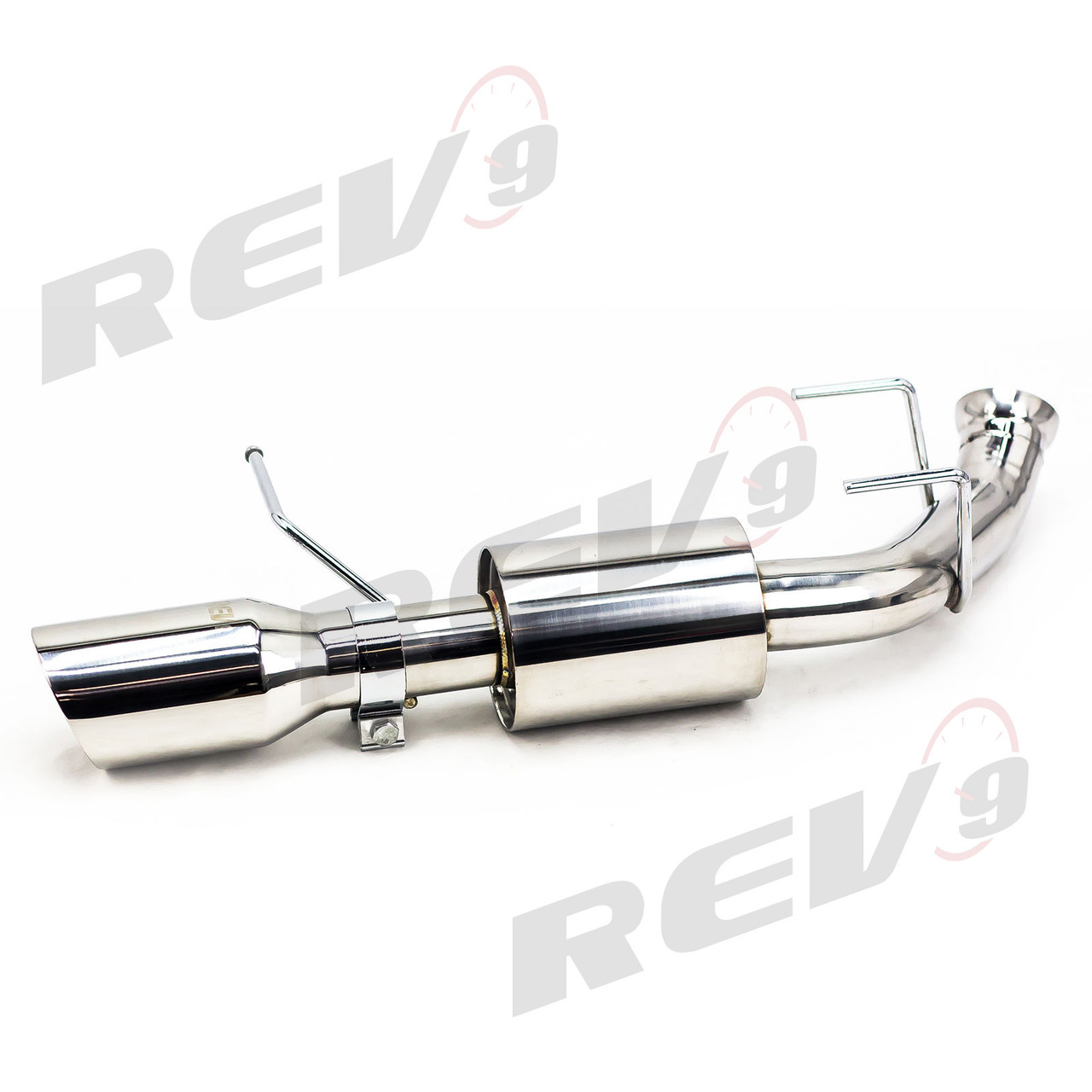 Rev9 FlowMAXX axle back exhaust will give your Ford Mustang race-proven performance as well as powerful muscle car exhaust note. Made of stainless steel for long lasting corrosion protection and featuring a double walled exhaust tip for a sporty-look. Choose from a sports muffler or straight pipe.
