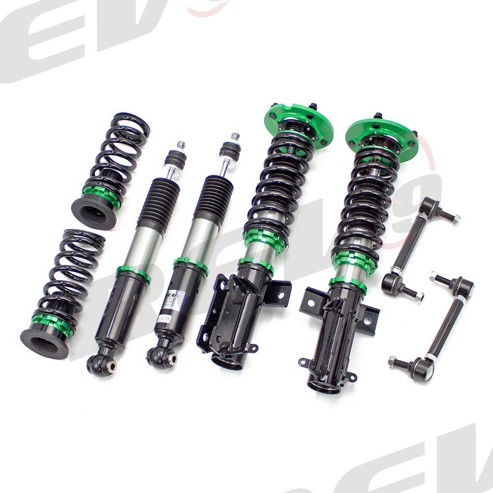 Hyper-Street II coilover suspension upgrade features mono-tube shocks with 32 clicks rebound settings and full length adjustable. Mono-tube shocks provides larger capacity for gas and oil to improve comfortable level of typical lowering vehicle. Special 32 clicks of valving allows user to fine tune rebound force settings. Independent spring tension and full length adjustable allows drop without sacrifice comfort by shorten pitch distance.