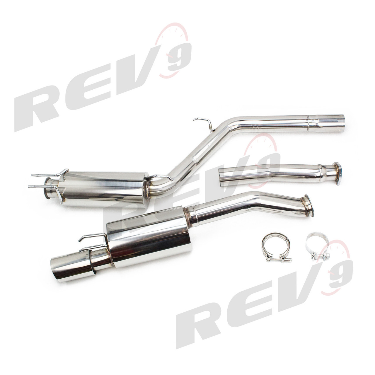 Rev9 FlowMAXX axle back exhaust will give the JDM race-proven performance as well as performance car exhaust note. Made of stainless steel for long lasting corrosion protection, featuring double wall exhaust tip for that elegant sports look. Choose from sports muffler or straight pipe for that awesome performance car rumbling exhaust sound!