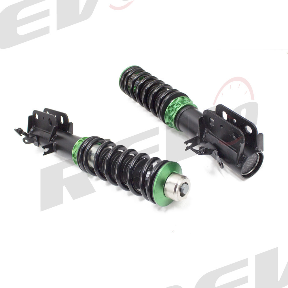 Hyper-Street II coilover suspension upgrade features mono-tube shocks with 32 clicks rebound settings and full length adjustable. Mono-tube shocks provides larger capacity for gas and oil to improve comfortable level of typical lowering vehicle. Special 32 clicks of valving allows user to fine tune rebound force settings. Independent spring tension and full length adjustable allows drop without sacrifice comfort by shorten pitch distance.